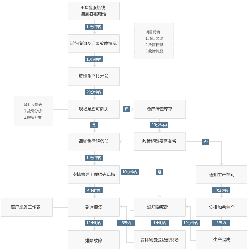 售后服务响应时间:收到通知后1个小时内响应