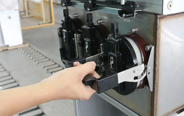 将装完熔芯的熔丝座,水平推进熔丝仓内,左手抬起撞针机构,右手向内推动把手锁紧熔丝座。